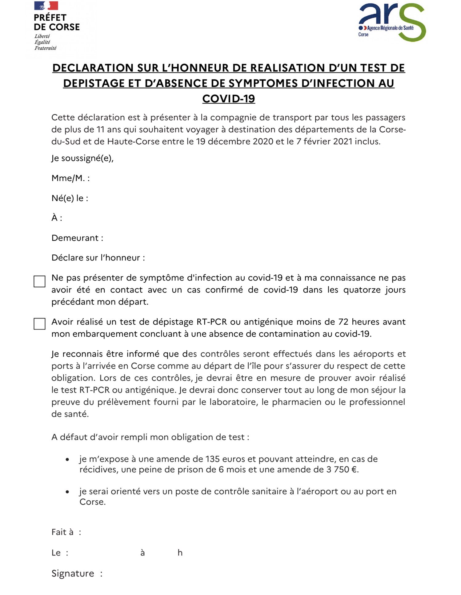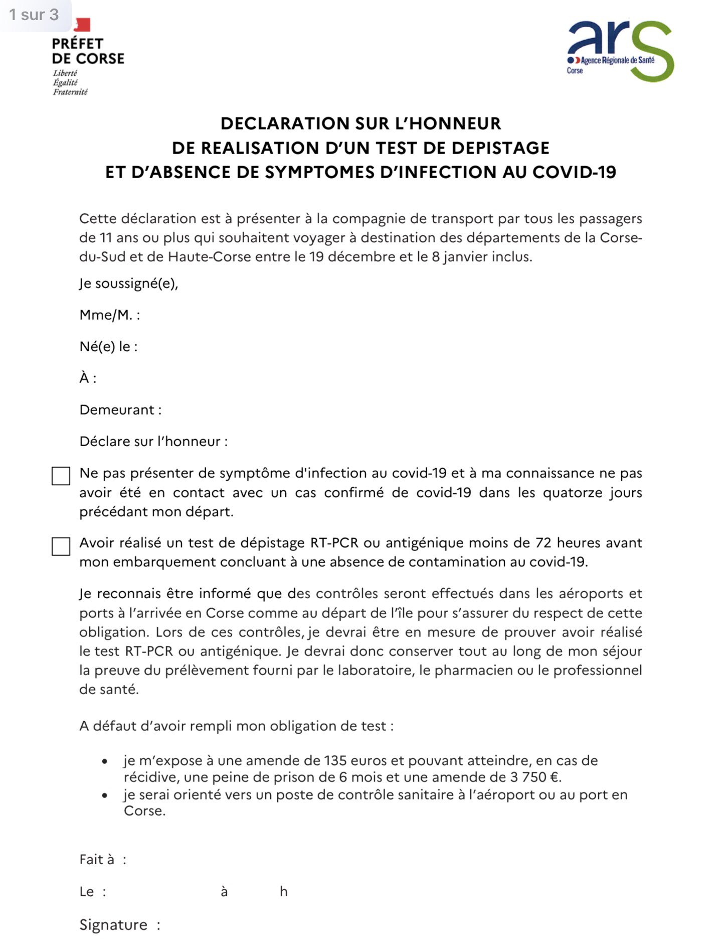Voici la nouvelle attestation de sortie le ministère de l'intérieur a mis en ligne un nouveau modèle d'attestation de déplacement dérogatoire. Cela devrait être possible dès la semaine prochaine à l'occasion d'une. You cannot get tests from your work, school, college or university (ask them for rapid lateral. Attestation de sortie du territoire métropolitain : Générateur d'attestation covid q4 2020. See the cdc proof of negative test result page to view the order, complete the attestation, and to see faq's. Alors que 50.000 personnes sont attendues sur l'île de beauté pour les vacances de noël. A lire attentivement avant de voyager en corse : , i attest that such person has recovered from. Oui, encore une attestation de disponible, vous le savez, nous avons le devoir aux yeux de la lois de rédiger … L'agence régionale de santé (ars) de corse a annoncé ce 3 août le déclenchement du plan blanc sur l'ensemble du territoire insulaire en raison d'une flambée des cas de contamination au covid. Covid passport is a document that confirms that its owner has been vaccinated against coronavirus pcr test results and dates can also be added to covid passports for the convenience of travellers. We know that all of the currently approved vaccines are very effective at preventing severe illness.